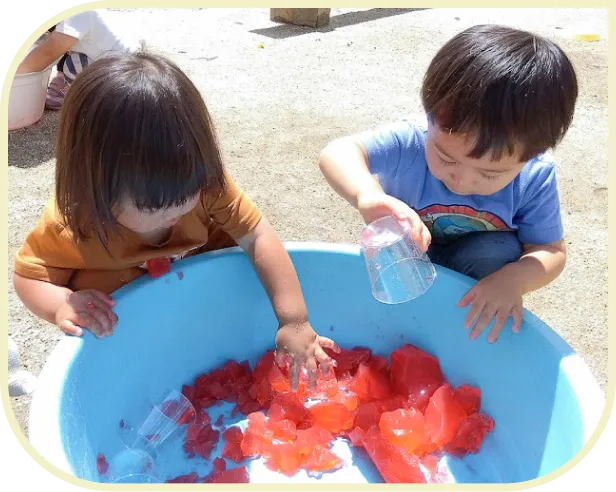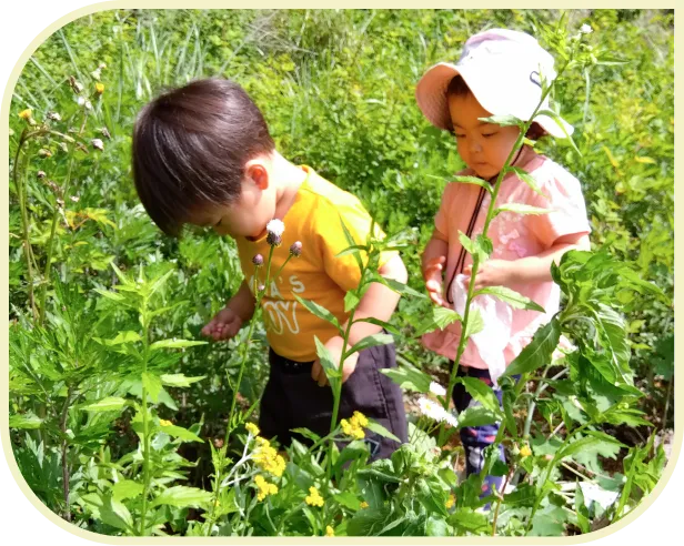子どもたちは心から安心できる場所だと、よく遊びます。よく遊ぶ子は、その経験の中で多くのことを学びます。豊かな感受性、体や生き物や植物のしくみ、仲間や大人との心地よい関係性、すべて生きていくために必要な力です。
